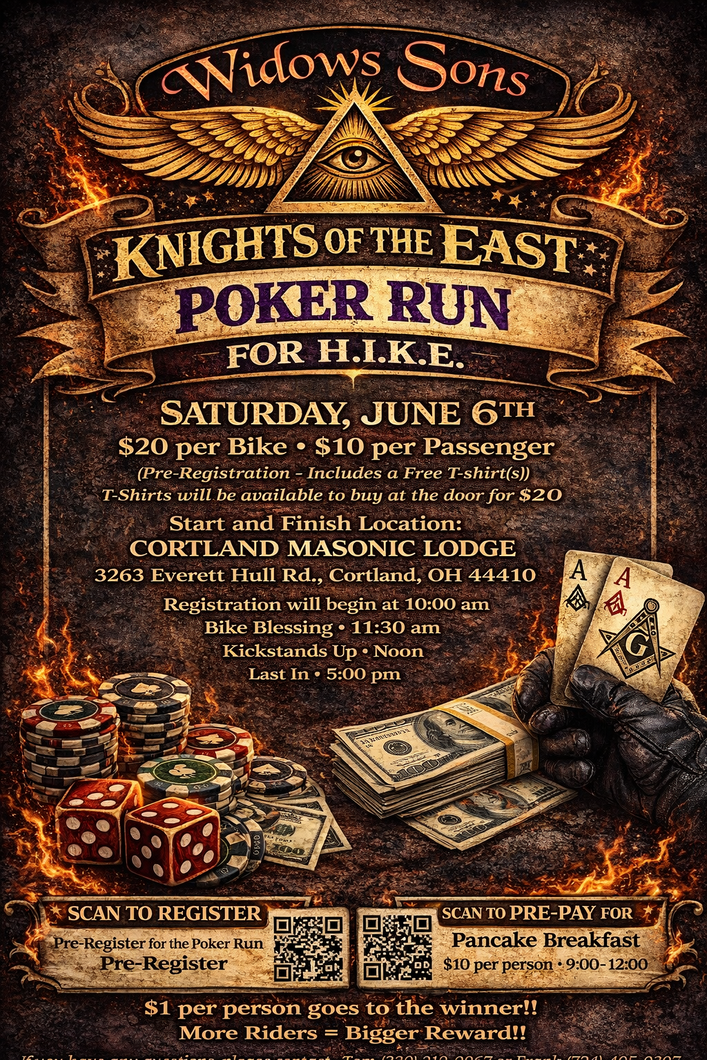 | 04/25/2026 | Hiram’s Legacy | Blessing of the Bikes | Click here for Flyer |