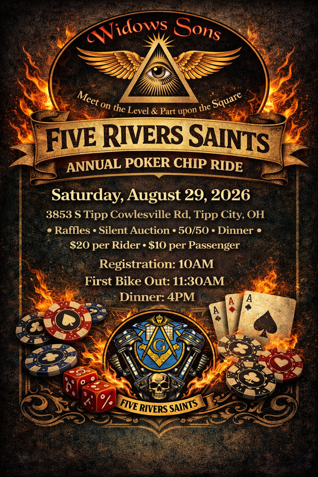 | 08/29/2026 | Five River Saints | Annual Charity ride | Click here for flyer |